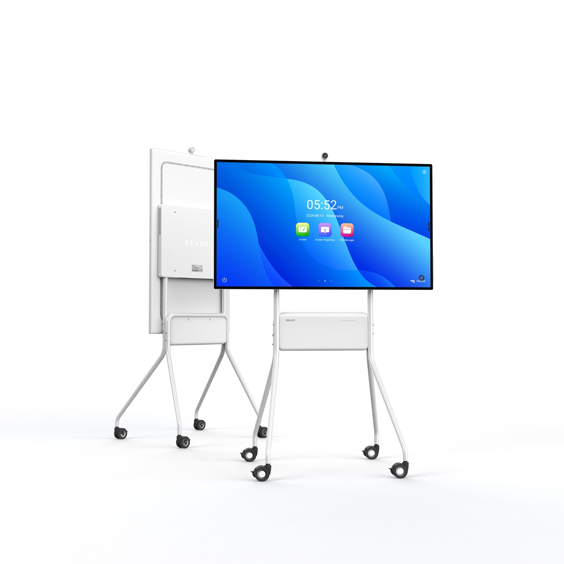 55WA1D 可旋轉(zhuǎn)式交互式平板以人性化的旋轉(zhuǎn)機(jī)構(gòu)、多場景適配能力以及高效的協(xié)同功能,充分展現(xiàn)了康冠科技“以用戶為中心”的設(shè)計理念與工程實現(xiàn)能力。產(chǎn)品支持屏幕90°自由旋轉(zhuǎn),可在橫屏與豎屏模式間靈活切換,并標(biāo)配帶腳輪的移動底座,方便在不同空間自由部署。